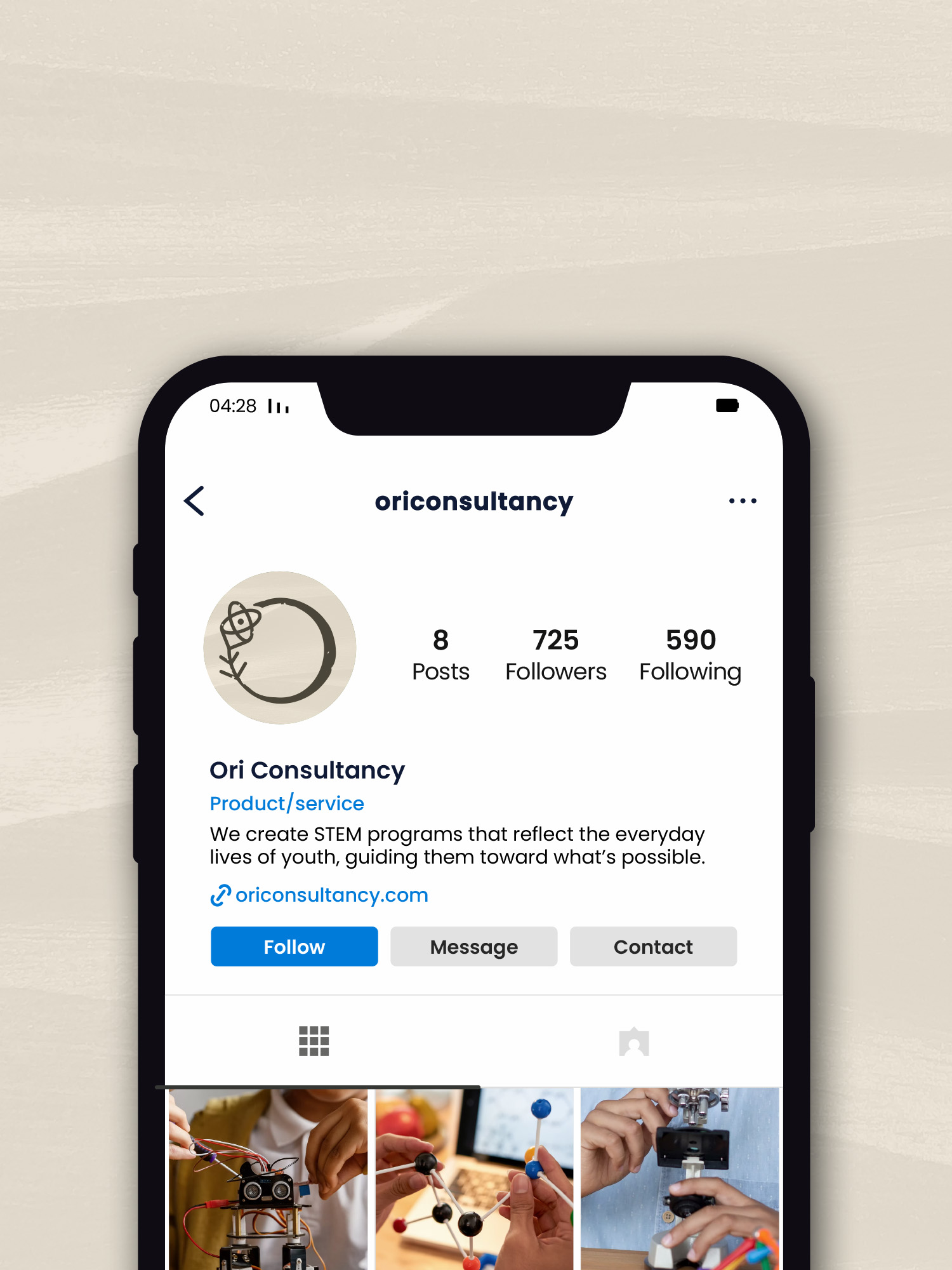 In early ideating on the logo, my North Star was Ori's three pillars: community, STEM, and education. Before creating the logo, I created three custom icons that represent each of the brand's pillars. I realized if I combined the three icons in a very intentional way, they resemble a flower, which felt a poetic way to represent how Ori is helping to facilitate growth and emboldening youth to create their own futures.